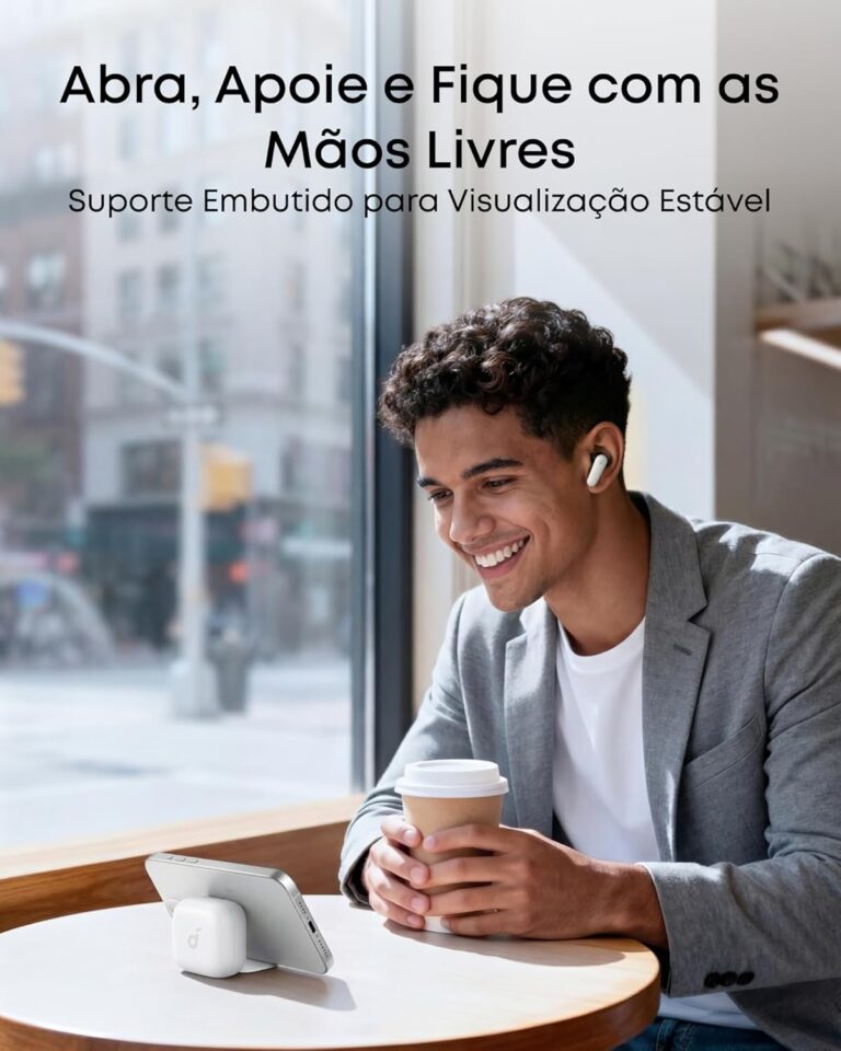 🔥 Esse fone tem um estojo que vira suporte: